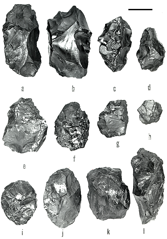 Type 1, a-d; Type 2, e-h; Form 1, i-j; Form 2; k-l. Cultural Component I, c; Cultural Component III, d, j-l; Cultural Component V, b; Cultural Component VI, e-f. Cultural Component VII, Subcomponent: VIIA, g-i; und., a. Cryptocrystalline silica, a-l.