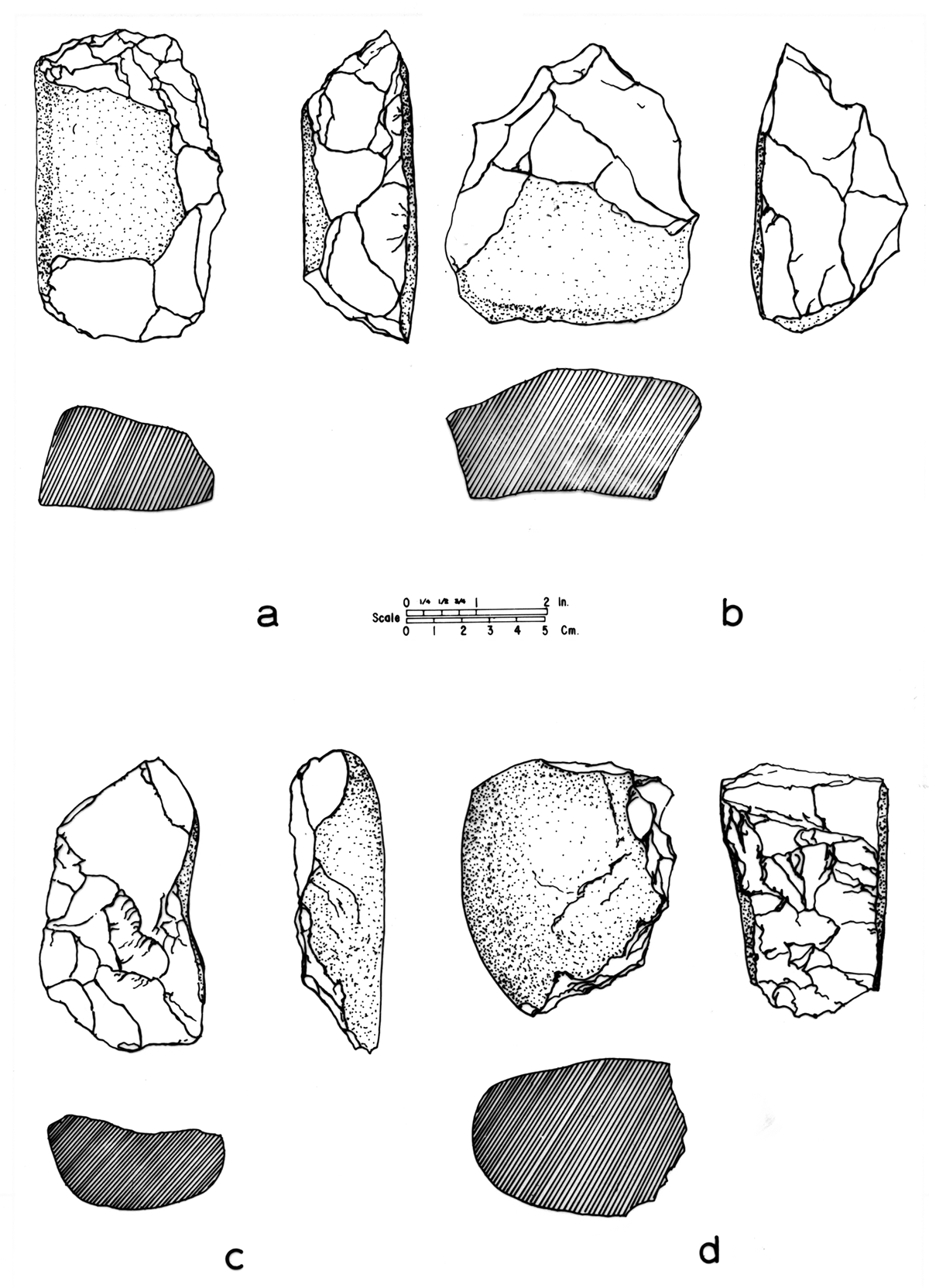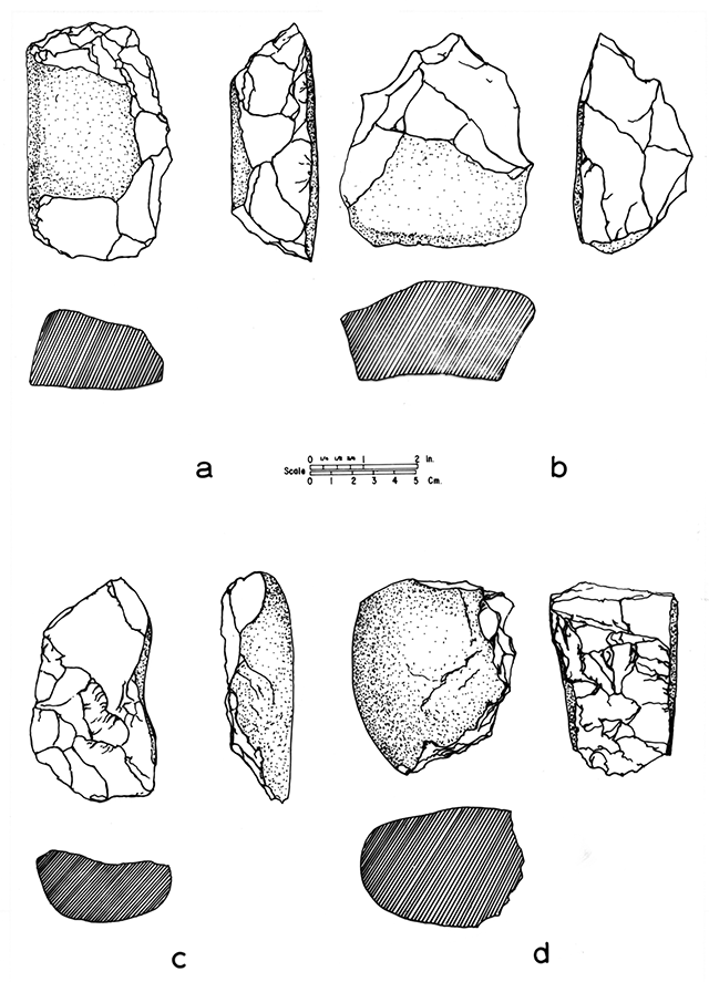 Cultural Component III, d; Component undesignated (resting on the surface of Cultural Component I), a-c. Basalt, a-d.