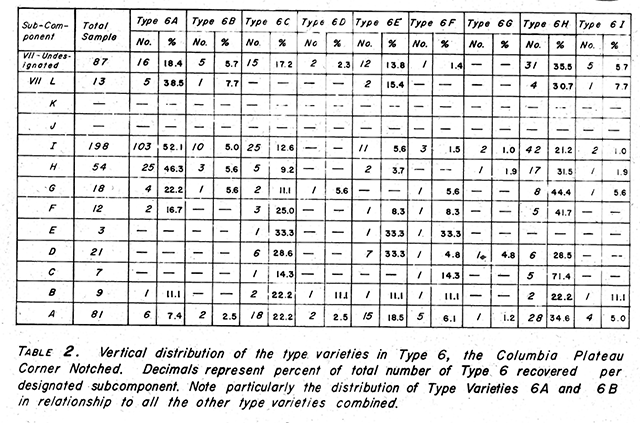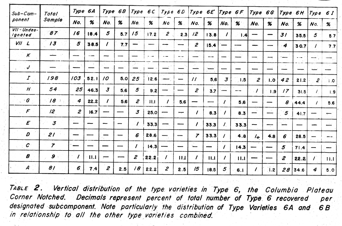 Table 2. Vertical distribution of the type varieties in Type 6, the Columbia Plateau Corner Notched.