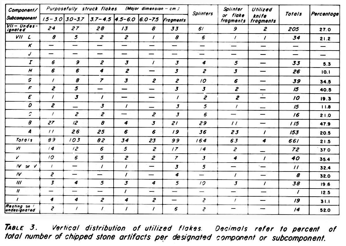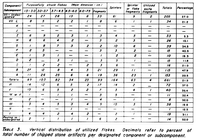 Decimals refer to percent of total number of chipped stone artifacts per designated component or subcomponent.