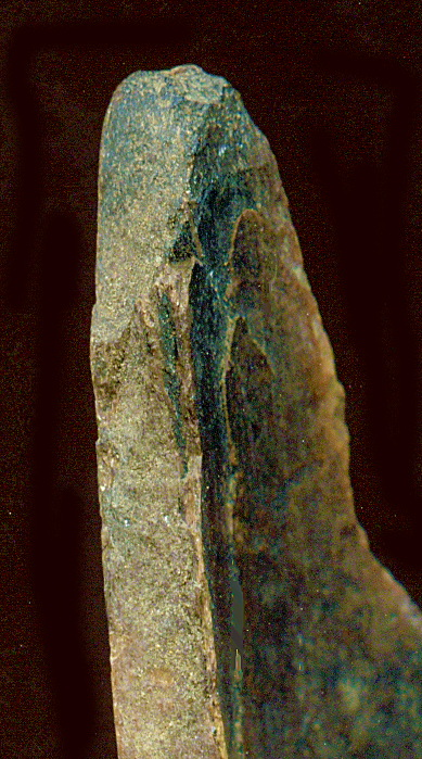 45KT28/B1298. VIIUnd, Cayuse Phase. This specimen has a chisel-like end flaked so that the edge is straight both in plan view and when viewed edge-on.