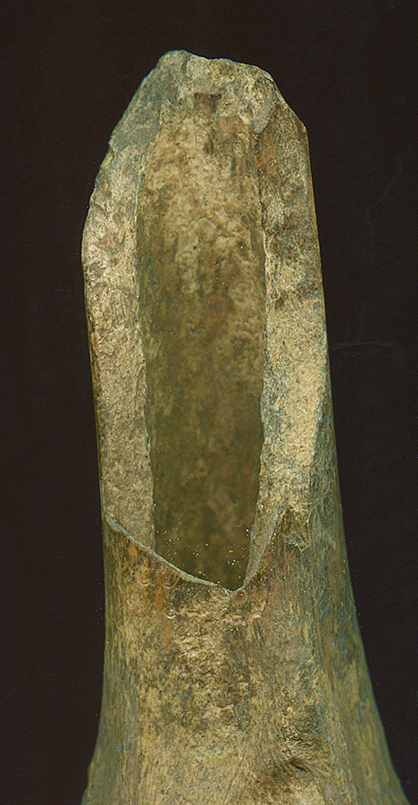 Technique of manufacture. Though splinters sometimes were prepared by cutting out long narrow sections of long bone with a graver or chipped stone knife, the more usual method was simply to spilt or crush the long bone and select an appropriately shaped splinter. The splinter was then prepared for use by grinding a sharp point at one end and polishing the shaft. In some cases the splinter was used without alteration. Comments. None.