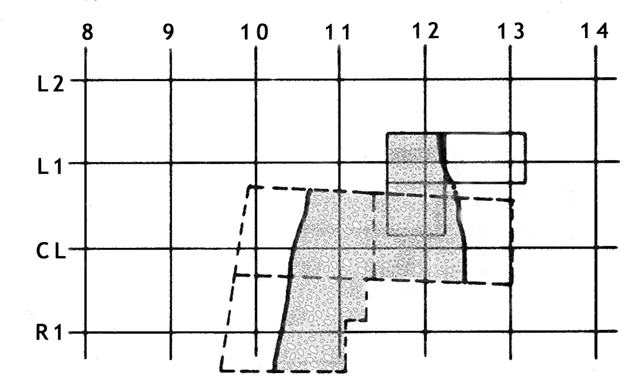 To keep within the final publication budget, it was necessary to shorten the report by removing a number of figures and the accompanying text. This figure, which shows the excavation units in Cultural Component I, was one such figure. During the final three years of excavation, the river partially flooded the excavation, so each year a new excavation had to be established. The smaller sounding represents the first year of excavation in CCI, while the larger represents the second year. The filled area is the top of the distributary channel gravel deposited by Sunset Creek and which created the irregular surface on which most of the CCI artifacts were recovered.