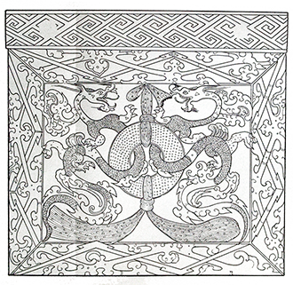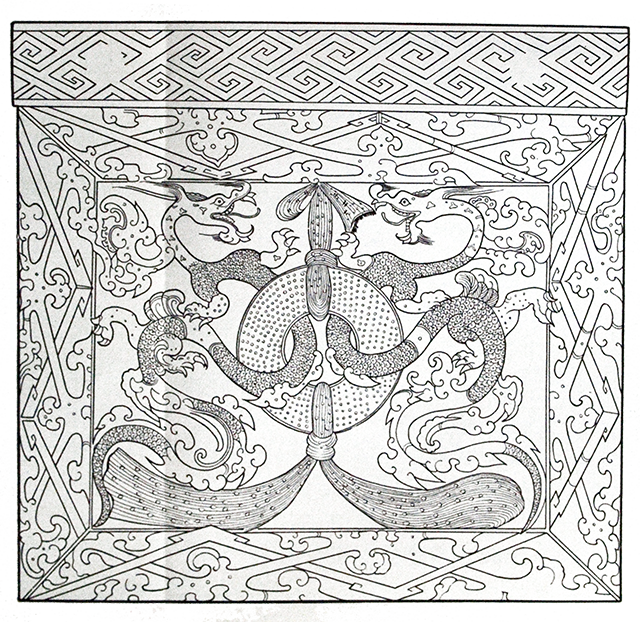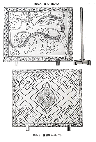 A pair of screens from the grave of Xin Zhui, one of a bi, the other of a dragon. |