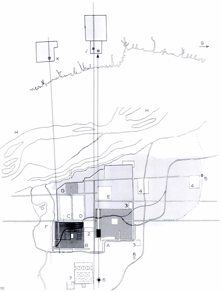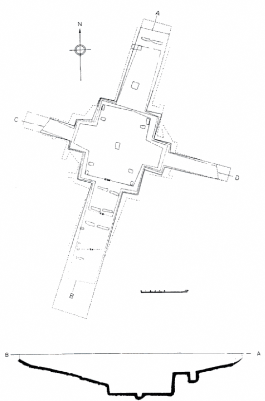 This is the plan of a Shang royal tomb from Anyang. Notice how the nine-in-one space is well represented in the central portion of the tomb. |