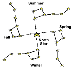 This is the position of the Big Dipper constellation as it circles around Polaris, the Pole Star, during the course of a yearly cycle. Or as the Chinese would say, Dou Xiu, the Dipper Mansion of the Black Tortoise. Now, we may be confused about the location of Heaven, but in China everyone knows exactly where it is. It is the Pole Star, Polaris, where the Jade Emperor resides and from which he rules the heavens and the earth. Go to the Dipper Seasonal Clock. Qi, the Heavenly Breath, streams down from Polaris, animating the Earth with vitality and purpose. Given this, how would you interpret the swastika in the design on the pot above? |