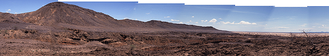 ![]() | Looking east-southeast. Close-up of the platform seen in the right middle-ground two pictures above. Note the slightly conical form of the platform surface, which obscures the curb on the far side. | |