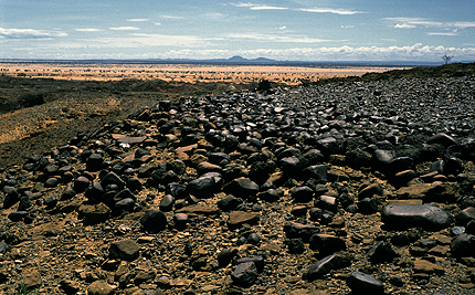 3. Each of these Namoratunga has a collar of large cobbles that surrounds the platform. This is the collar at the Lothagam Namoratunga. It is unusually wide. | ![]() |