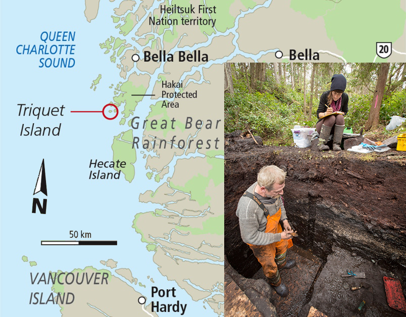 The North Pacific region showing the terrain and coastal waters over which successive migrations of people entered the North America and repeatedly populated the Northwest Coast. Archaeologists, biologists and linguists are still sorting out the details of this process. To the right is what Carl Borden made of this process back in 1978. We've learned quite a lot since and the story is, of course, a bit more complex. CURRENT COASTAL PERSPECTIVE BY WADE