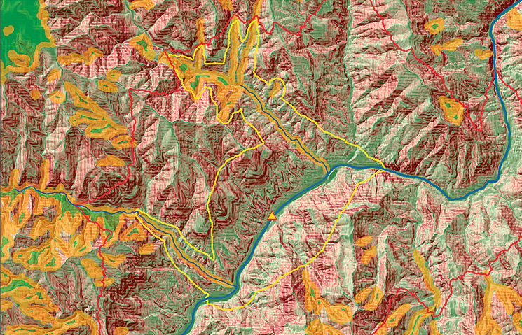 GIS of a winter village and it's resource catchment.   Click on image to enlarge.