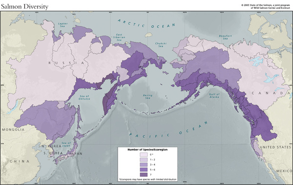 Salmon Species Diversity. 5 to 6 species in NWC rivers.
