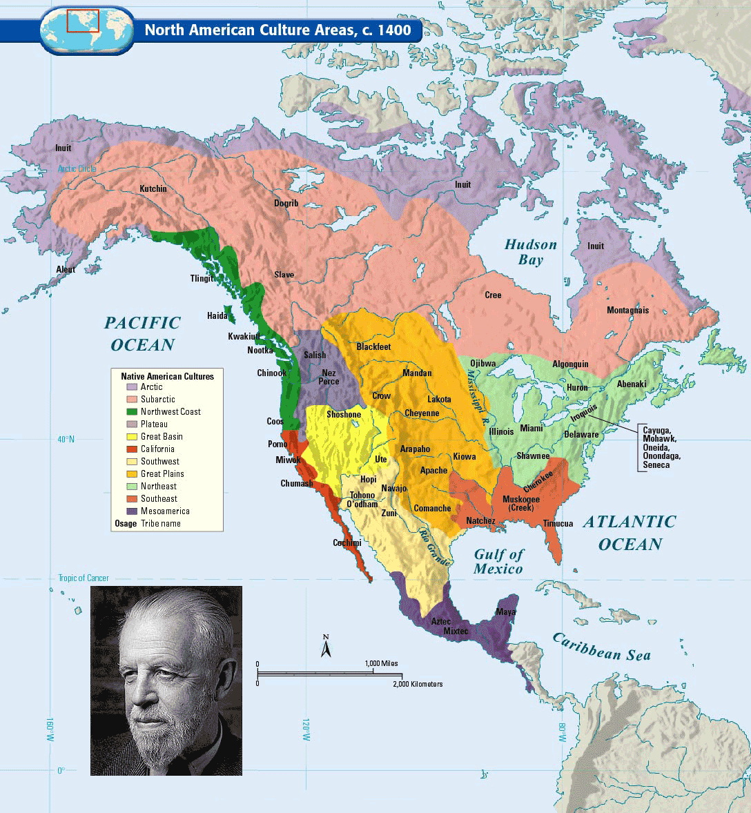 Culture areas of North America as per A. L. Kroeber.   Click on image to enlarge.