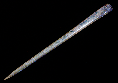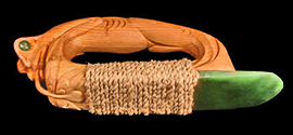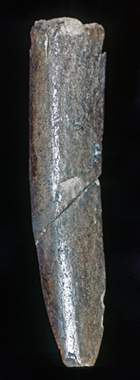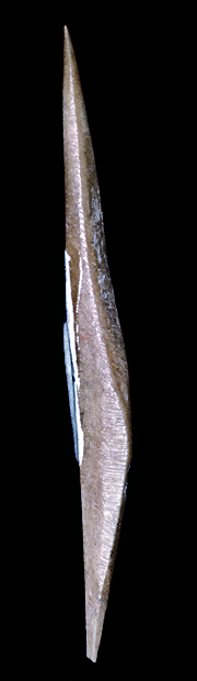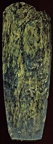 A narrow Inupiaq chisel for fine carving. Nephrite. Collected by Emmons ca. 1900. The bit is about 10 mm. wide. © Burke Museum. |