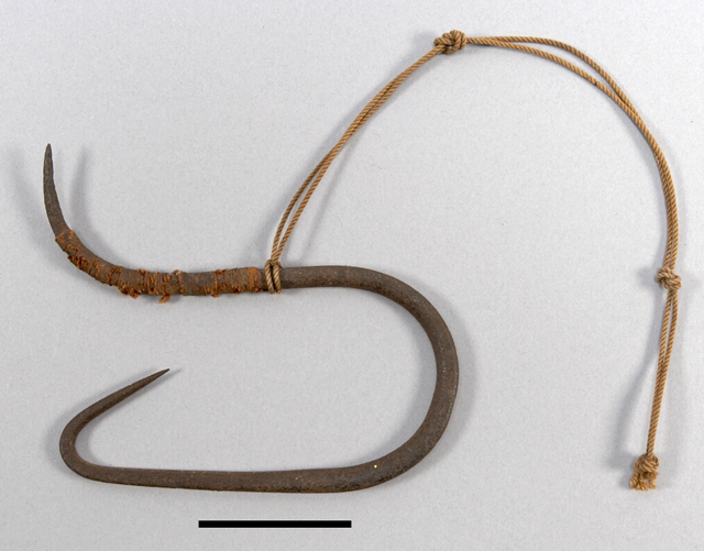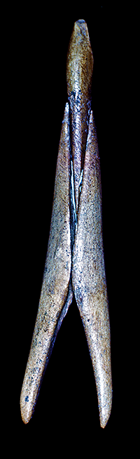 Fishhook barb from Fishtown (45SK33). The offset on the right side is designed to fit in a wooden or stone shank.