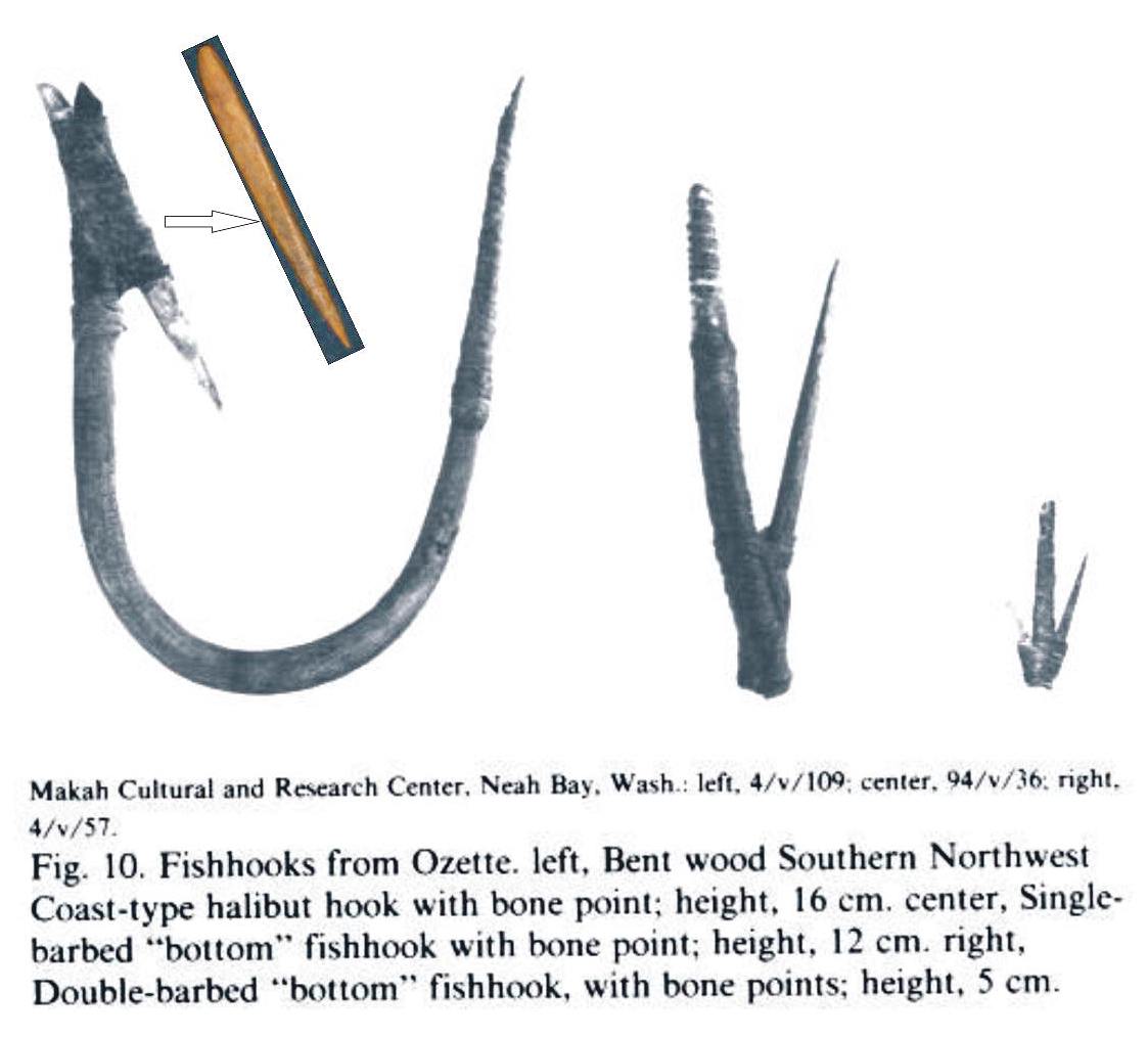 Composite Harpoon Toggle from the Fishtown Site, 45SK33, situated in the Skagit River delta (right).