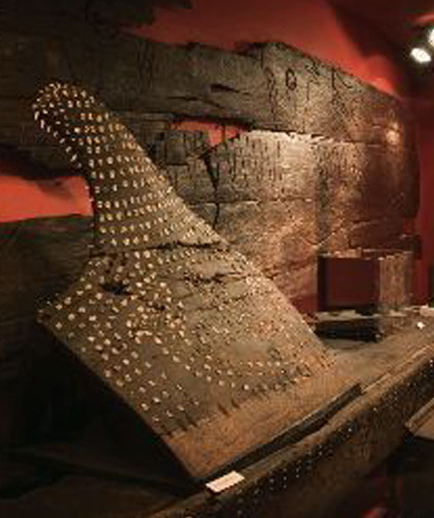 •NEW• This is the dorsal fin carving from the Ozette Village on the Olympic Peninsula. The display is a portion of the longhouse at Ozette, which was covered by a mudslide.