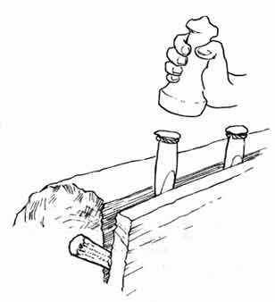 Antler splitting wedges from Fishtown (45SK33) (left) and Musquium (right). Splitting wedges are common at deltaic and littoral sites.
