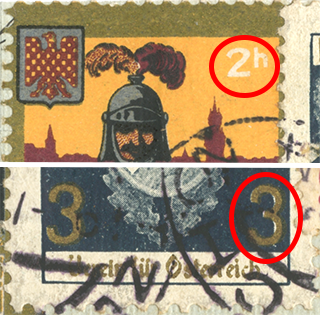 A note on label denomination You will notice that some labels shown on this website are denominated in specific currencies, such as hellers, as in the 2h example to the left. Others simply have a number with no currency specified. These are designed to be sold cross-border in two or more countries, most often Germany, Austria, and Czechoslovakia. |