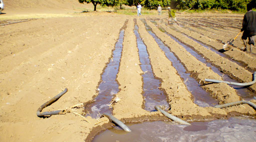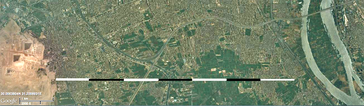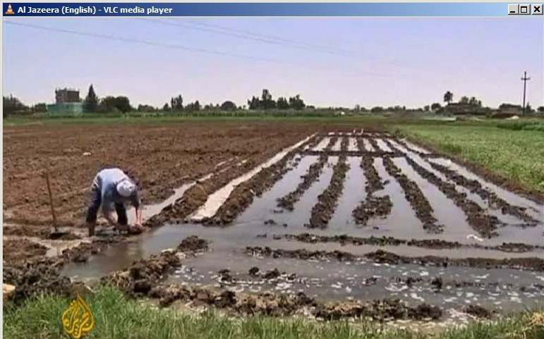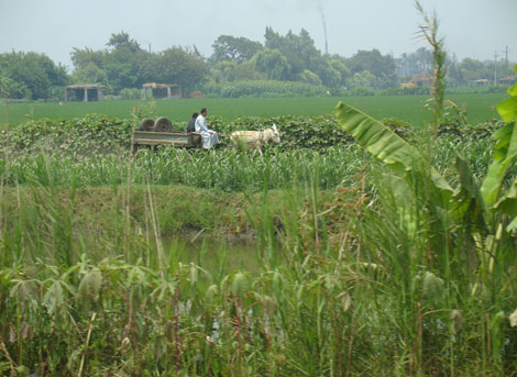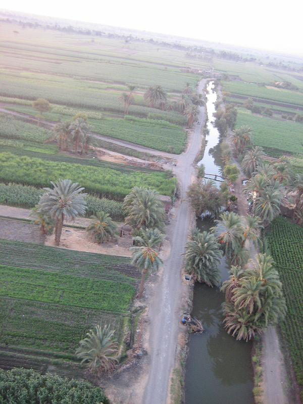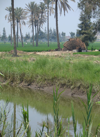 Nile Delta distributary channel (tree line) and main canal (foreground). |
