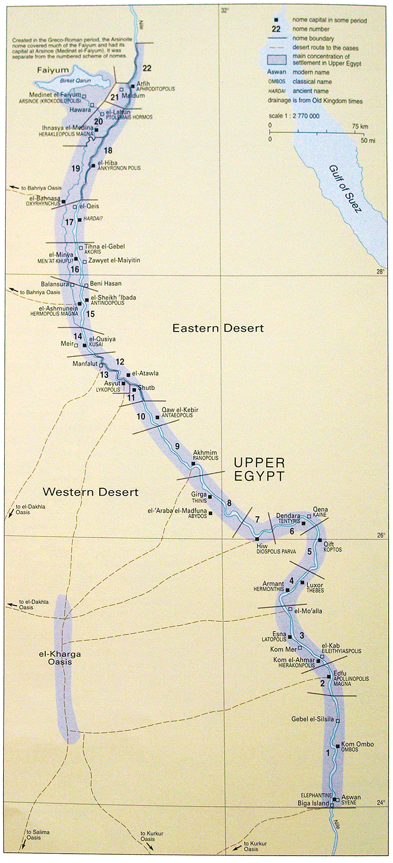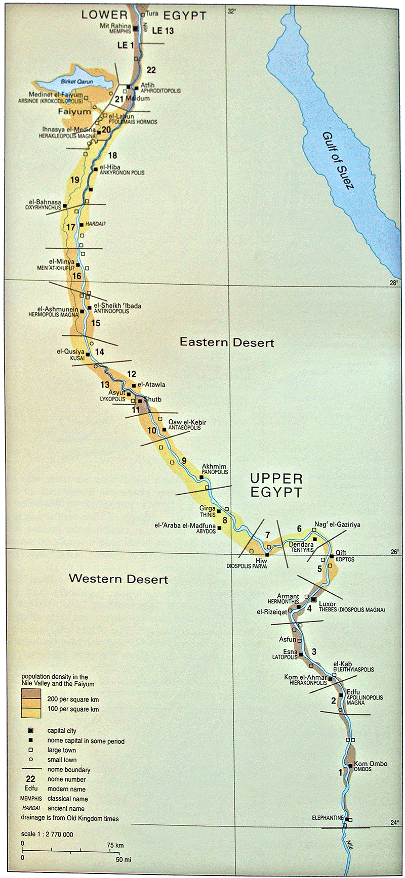 Population density mapped by Nome. Upper Egypt during the Old Kingdom. |