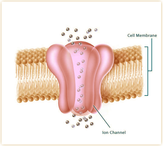 Sodium ion channel structured to move socium ions in and out of the neuron. Similar gateways transmit other ions, neurotransmitters, and a variety of other molecules. |